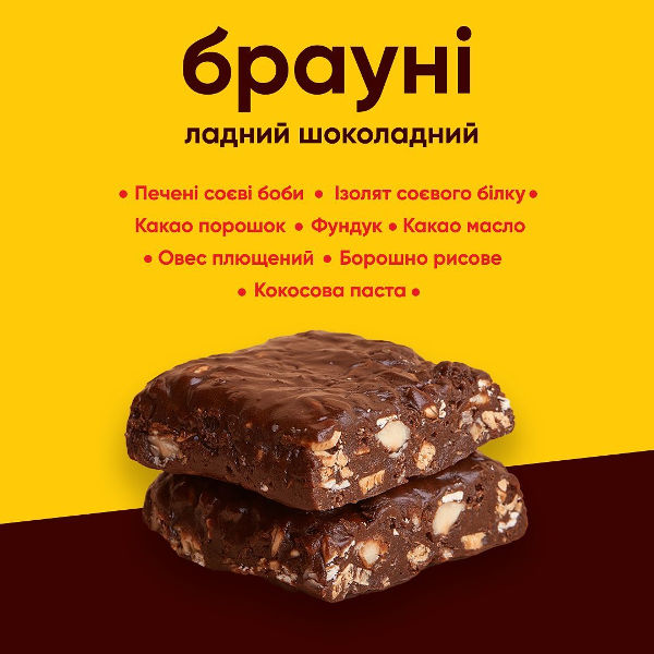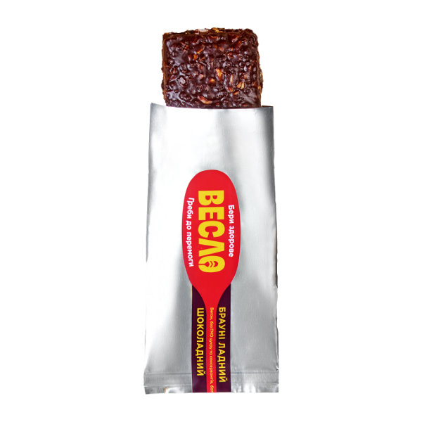Батончик Весло 60 г Брауні ладний шоколадний - корисний горіхово-шоколадний батончик від українського бренду Весло. Багатий смак чорного шоколаду з горіхами робить цей батончик особливо смачним. Цей вибуховий шоколадний смак зарядить тебе енергією на кілька годин. Смакує як десерт, а насичує як повноцінний обід.