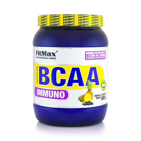 FitMax BCAA Immuno - це спеціалізована формула, що складається з незамінних амінокислот ВСАА + лізин, з додаванням рослинних екстрактів і вітаміну С. Комплекс надає значну підтримку метаболічним процесам, покращує фізичний стан, і в значній мірі зміцнює імунну систему.