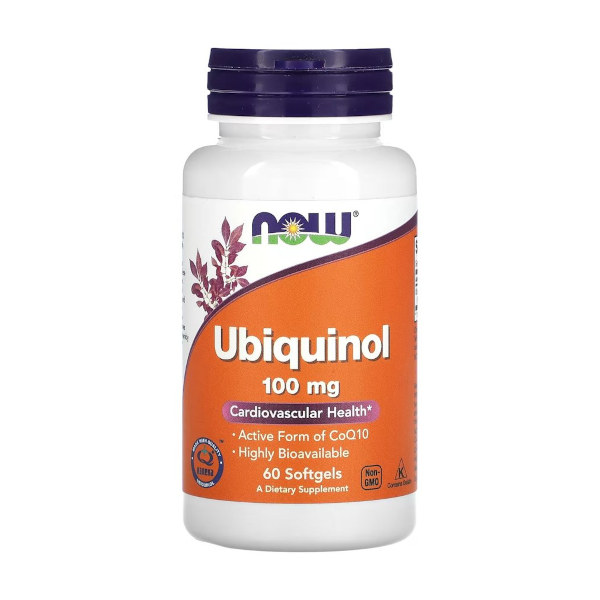 NOW Foods Ubiquinol - відновлена та активна форма коензиму Q10. Убихінол несе два додаткових електрона і два протона. Фактично убихінол можна розглядати як убихінон, який приєднав до себе молекулу водню. Убихінол (CoQ10-H2) володіє значно більшою біодоступністю, ніж убихінон (CoQ10).