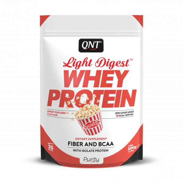 QNT Light Digest Whey Protein - це суміш концентрату та ізоляту сироваткового білка, що містить велику кількість ВСАА (L-лейцин, L-валін та L-ізолейцин), які є особливими амінокислотами, необхідними для відновлення та розвитку м’язів. Крім того, ця сироватка не містить глютену чи сої, і ідеально підходить для спортсменів, які не переносять цих інгредієнтів.