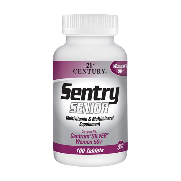 21st Century Sentry Senior Women's 50+ - витаминно-минеральный комплекс для физически активных женщин в возрасте от 50 лет, в состав которого входят 26 витаминов и минералов, которые помогут удовлетворить ежедневные пищевые потребности женского организма в этот период. Данный комплекс обеспечивает защиту тканей и клеток от старения, улучшает транспортировку питательных веществ в клетки, повышает иммунитет, обеспечивает организм жизненной энергией, здоровьем и хорошим самочувствием.