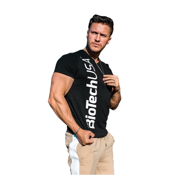 Футболка BioTech Черная L - удобная мужская футболка с короткими рукавами и v-образным вырезом от известного бренда BioTech, отлично подходит представителям сильного пола с массивным телосложением. Футболка изготовлена из органического хлопка, который приятный для тела.