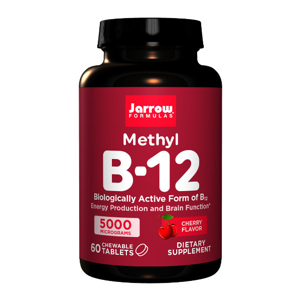 Jarrow Formulas Methyl B-12 Cherry 5000mcg - витамин B12 в форме метилкобаламина, который поддерживает здоровье и функционирование мозга и нервной системы, производство энергии и циклы сна и бодрствования. Метил B12 лучше усваивается, чем цианокобаламин, поэтому добавки могут понадобиться пожилым людям, лицам, принимающим схемы снижения кислотности желудка, а также некоторым вегетарианцам.