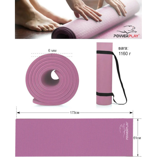 Йога мат PowerPlay идеально подходит для занятий йогой, гимнастикой и фитнесом, как дома, так и в зале или на природе. Также коврик можно постелить под тренажер для защиты напольного покрытия, лучшей амортизации и шумоизоляции.