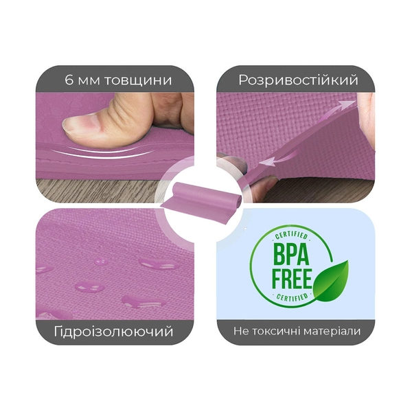 Толщина коврика в 6 мм обеспечивает комфорт при выполнении стойки на голове и других асан, а также обеспечит комфорт и защиту от холодного пола в шавасане и медитации.
