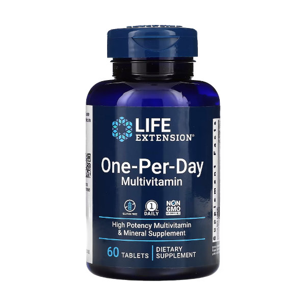 Life Extension One-Per-Day – мультивитамины, обеспечивающие полный спектр основных витаминов, минералов и других питательных веществ, которые соответствуют или превышают рекомендованную диетическую норму (RDA) почти для каждого ингредиента.