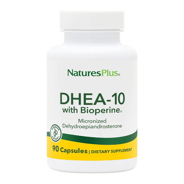 Natures Plus DHEA-10 with BioPerine – натуральная пищевая добавка на основе дегидроэпиандростерона и экстракта черного перца.