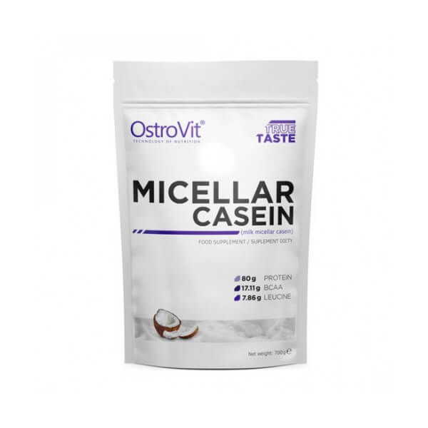 Новинка в линейке компании OstroVit. Препарат содержит медленный протеин, получаемый из молока методом ультра- и микрофильтрации. Протеиновая добавка на основе мицеллярного казеина является отличным источником белка животного происхождения, отличается от растительных белков значительно большой биоценностью. Мицеллярный казеин хорошо усваивается, не вызывает расстройство органов пищеварения, содержит значительное количество аминокислот с разветвленными боковыми цепочками (ВСАА). Вследствие того, что усвоение мицеллярного казеина протекает дольше, чем других протеинов, препараты на его основе предназначены для приема на ночь перед сном.