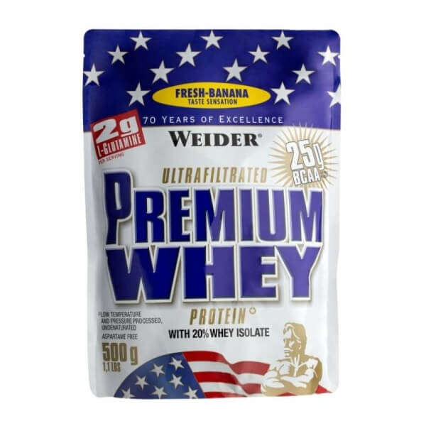 Weider Premium Whey является высококачественным микрофильтрованным протеином, который состоит на 20% из сывороточного изолята. Микрофильтрация проходит при не высокой температуре, сохраняя большую часть биологически активных ингредиентов. Этот белок содержит большое количество активных веществ, таких как глобулин, альфа-лактоглобулин, бета-лактоглобулин, иммуноглобулин и гликомакропептиды. Он богат аминокислотами BCAA и L-глютамином.