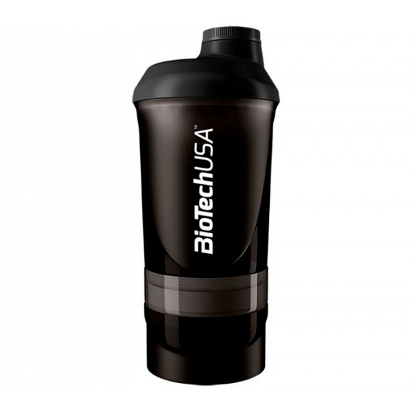 Шейкер Biotech Wave + Shaker 3in1 - шейкер с двумя контейнерами от известной компании Biotech, с помощью которого можно приготовить, хранить и транспортировать любимый спортивный напиток и не опасаться, что он протечет в сумке или в рюкзаке.