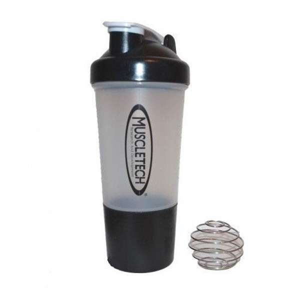 Шейкер Muscletech з пружинкою та контейнером - шейкер для приготування та вживання білкових та білково-вуглеводних коктейлів. Кришка горловини - зручна у відкриванні кліпса. Шейкер виготовлений з високоякісного пластика. Спеціальна сталева кулька, що входить до комплекту, допомагає ретельно розбити грудочки, щоб отримати ідеально розчинену і «гладку» консистенцію.